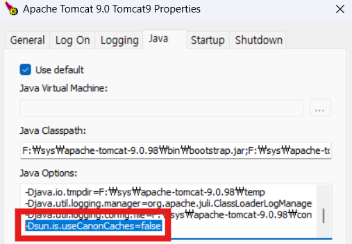 sun.is.useCanonCaches false 설정