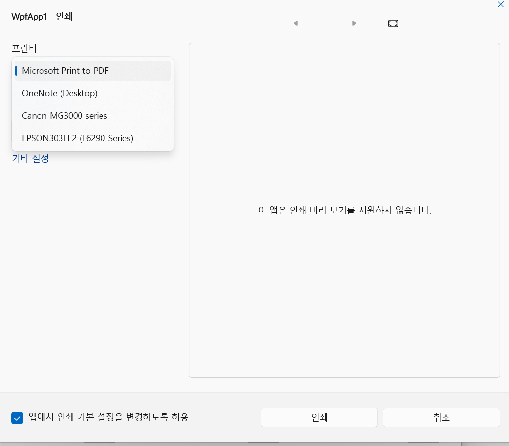 프린트 버튼 클릭 시 화면