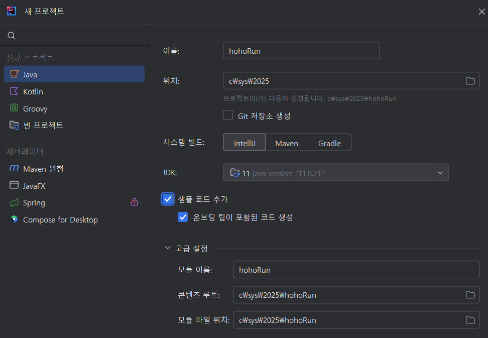 프로젝트 생성