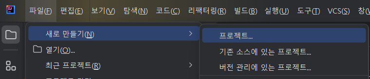 - 파일 > 새로 만들기 > 프로젝트...
